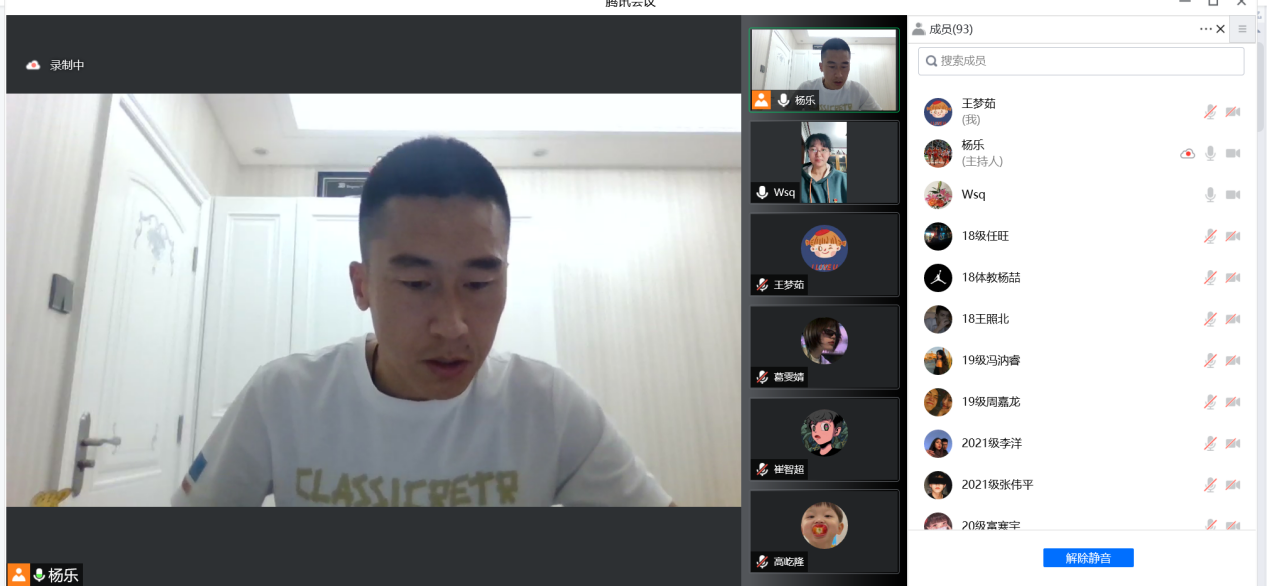 接着,学工办主任杨乐对高校疫情防控警示教育典型案例进行通报,提醒全体同学们要引以为戒,吸取教训,充分认识疫情常态化防控工作的艰巨性和重要性,坚决克服麻痹思想和侥幸心理,正确面对疫情,坚定防控信心,关注国家专业权威部门、主流媒体和卫生健康部门发布的疫情信息,不传谣不信谣,增强辨别力。同时做好个人防护,不到中高风险地区,增强防护意识,保持良好习惯,做到每日按时健康打卡,居家学习期间也要增强防范电信网络诈骗意识,不在公共社交媒体平台转发或评论不实信息。最后嘱咐同学们合理安排时间,做到劳逸结合,按时完成学习任务。