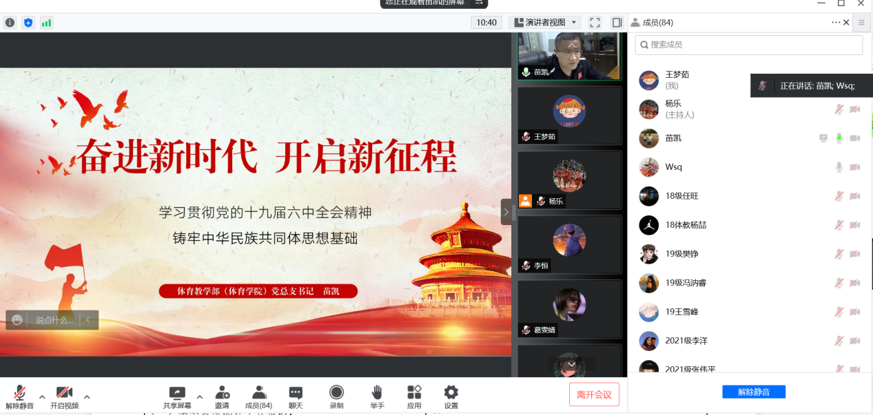 2022年4月22日晚7点30分,太阳集团tyc539以线上会议的形式召开了2022年第二次全体学生大会,会议由党总支副书记武淑琴主持,党总支书记苗凯、学工办主任杨乐、辅导员王梦茹、体育教育专业全体同学参加。