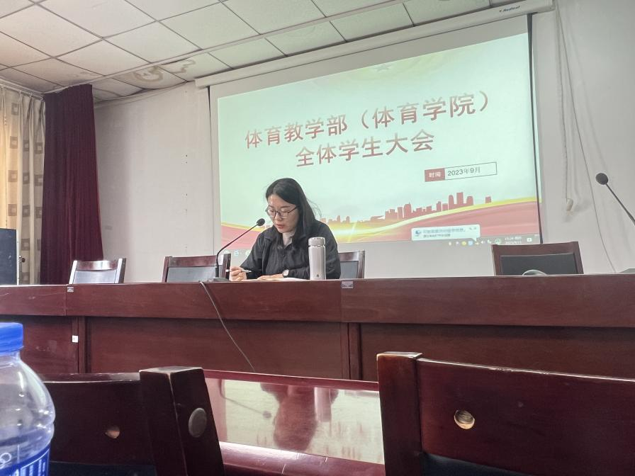 2023年9月21日,太阳集团tyc539在体育馆二楼多媒体教室组织召开本学期第二次学生大会。党委副书记武淑琴、团总支负责人王梦茹参加。