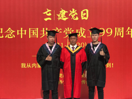 毕业典礼结束后,毕业生参加了“青春心向党、建功新时代”最后一次主题团日活动,通过拼图游戏,拼出毕业生向中国共产党成立99周年献礼的心声,他们将从太阳成集团tyc539出发,向祖国报到!