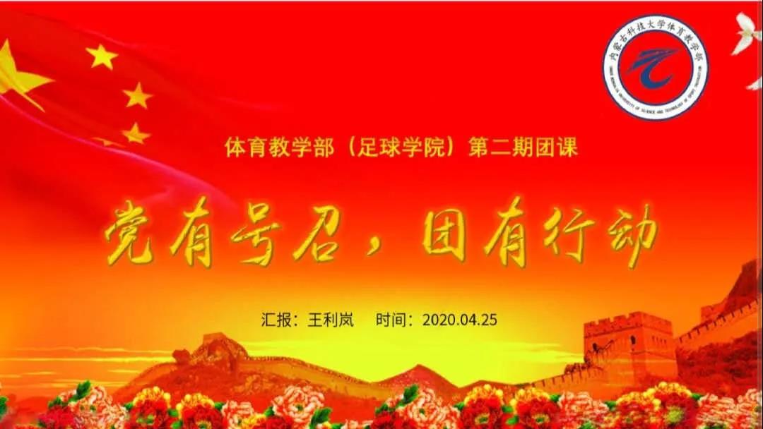 2020年4月25日,体育教学部(足球学院)围绕“团课百科”开展体育教育专业团课理论学习。本期团课由2019级团支部书记王利岚主持,60名学员参加。