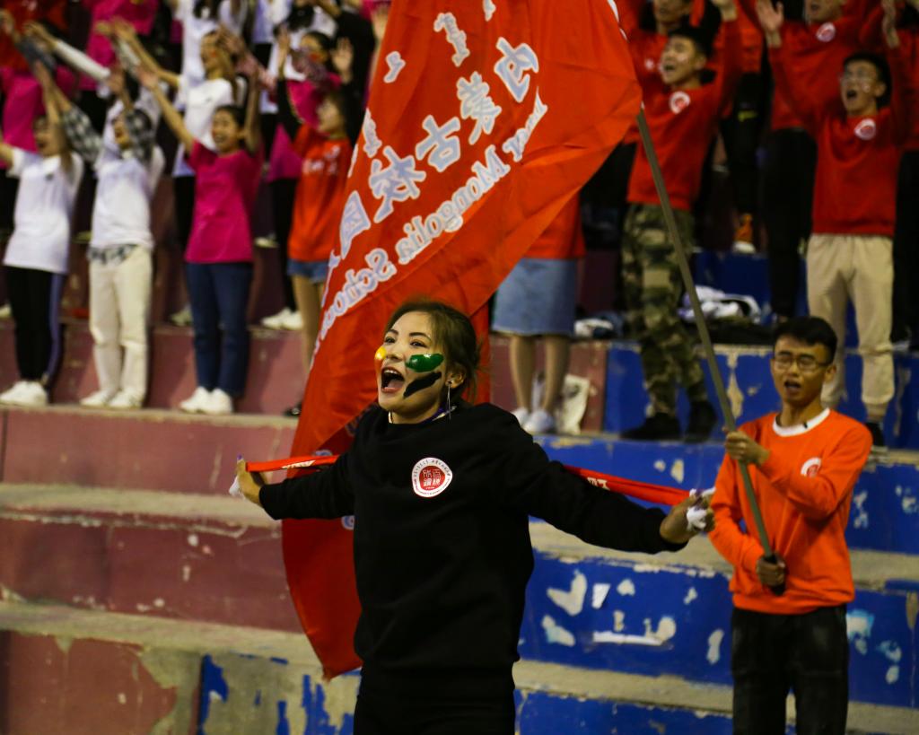 在随后的演出《祝福祖国》中,表演者手持红扇,火红的鲜花汇聚成火红的海洋,灵动的舞姿迸发勇往直前、蓬勃向上的朝气,表演者用舞姿祝福所有参赛队伍取得好成绩。鼓声响起,现场观众手持应援棒,高喊“内科大欢迎您”,热烈的呐喊声回荡全场。