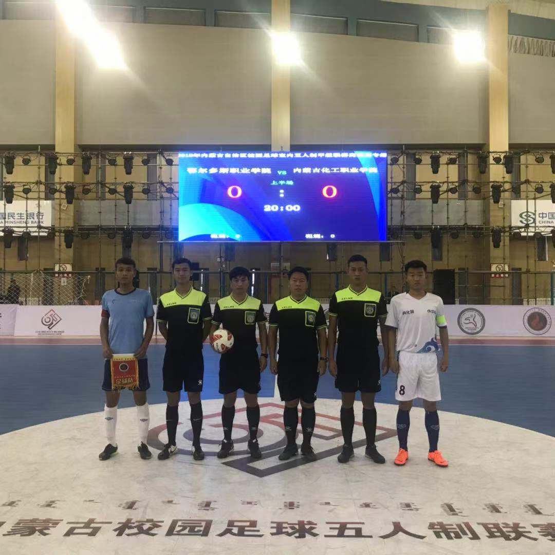 内蒙古高职组校园足球室内五人制甲级联赛已举办两届,是目前全国唯一一个举办高职组比赛的省份。五人制足球赛的举办让足球真正走进校园,为促进校园足球文化建设,推动大学生足球运动开展提供良好平台。体育教育专业(足球方向)学子在裁判工作中,公正执法,展现了裁判员的良好的精神面貌,为自治区高校开展足球运动起到良好的推动作用。