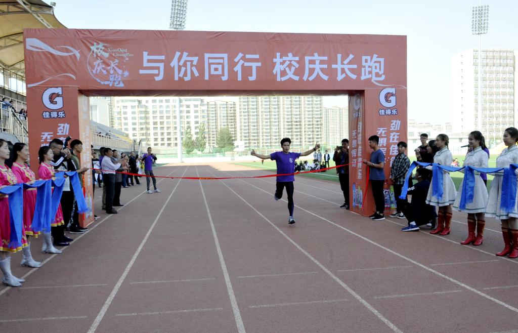 在校舞蹈队和能源与环境学院同学们欢快的舞狮及啦啦操表演中,校庆长跑活动正式拉开帷幕。当校党委副书记、校长安胜利发令枪响起,身着统一文化衫的参赛师生及校友们冲出起跑线。运动员们用高昂的热情与矫健的步伐向母校传递着深深的祝福。