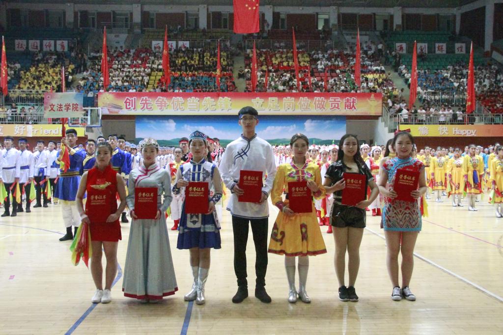 4月19日晚,太阳成集团tyc539举办2018年度第四届健身操舞比赛。该赛事由太阳成集团tyc539体育教学部(足球学院)主办,太阳成集团tyc539大学生体育协会承办。校党委常委、副校长任慧平,教务处处长赵永旺,思想政治教育专门委员会副主任于海平,体育教学部(足球学院)党总支书记、主任田瑞峰及团委和各学院领导莅临比赛。全校共1500余名师生观看比赛。