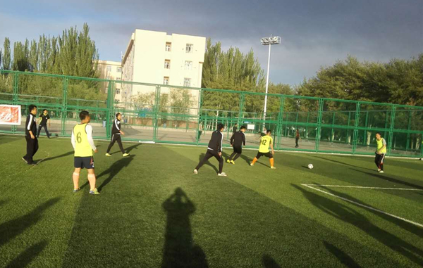 为庆祝内蒙古自治区成立70周年,迎接党的十九大胜利召开,近日,我校第七届教工五人制足球赛在体育场拉开序幕。本次比赛由校工会主办,经管学院分会、太阳成集团tyc539足球协会、体育教学部(足球学院)承办。全校共有来自各二级学院、职能处室、教辅单位的7支队伍参加。本次比赛以单循环赛的形式展开,赛期为两周。在首场揭幕战比赛中,经过40分钟的激战,材冶学院、工程训练中心联队和战胜了具有很强实力的经管学院、工业技术研究院联队;机关与图书馆联队战胜了建筑学院与土木工程学院联队。