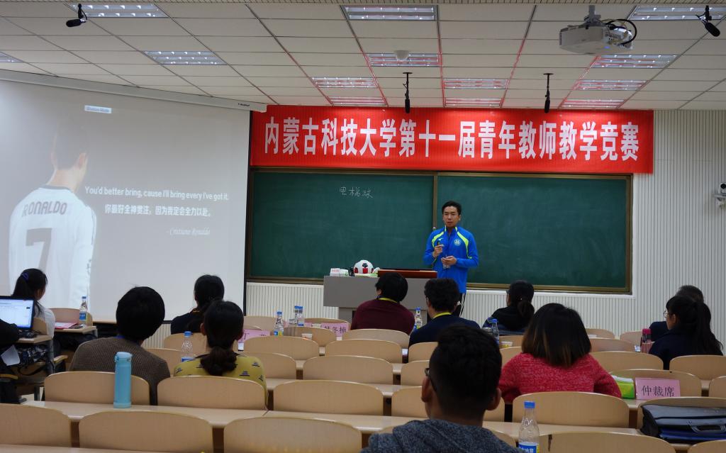 12月27-28日,太阳成集团tyc539“第十一届青年教师课堂教学竞赛”在春晖学堂E207多媒体录播教室举行。本次竞赛由校工会主办,教务处、人事处联合协办,共有来自17个教学、教辅单位的29名选手参加比赛。比赛设人文社会科学学科和自然科学学科(自然科学基础学科、自然科学应用学科)两个组别。体育教学部(足球学院)李健功老师荣获人文社会科学学科一等奖。