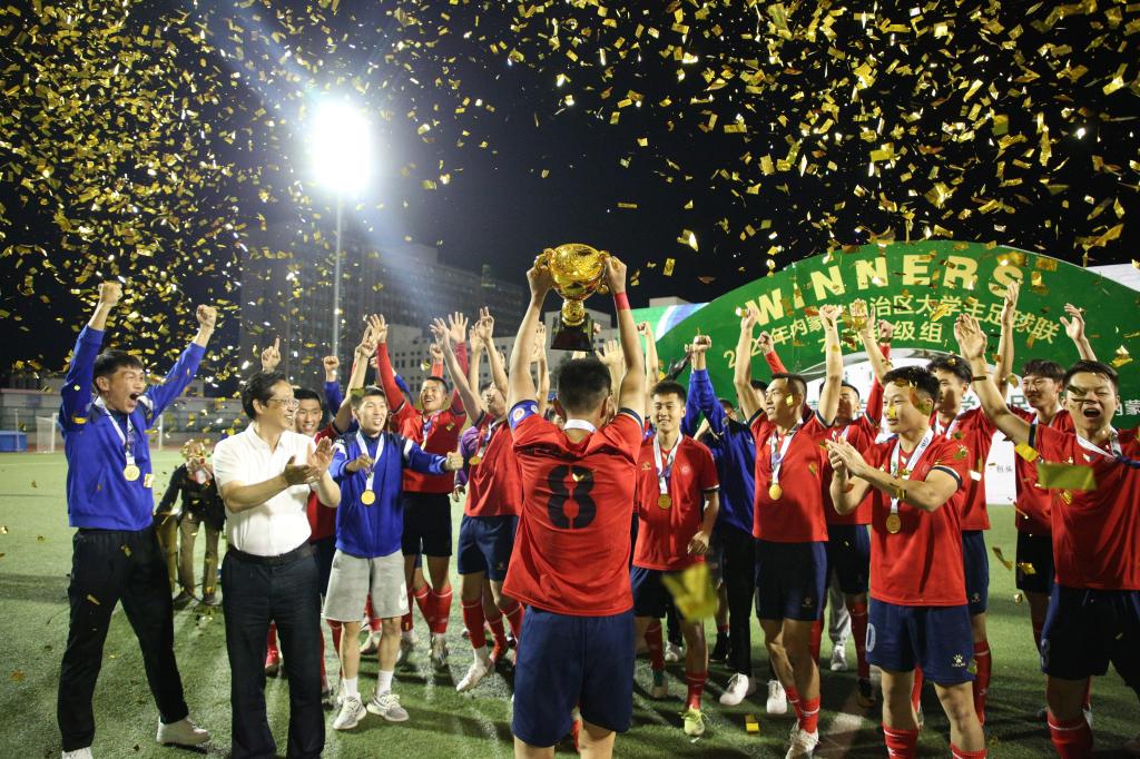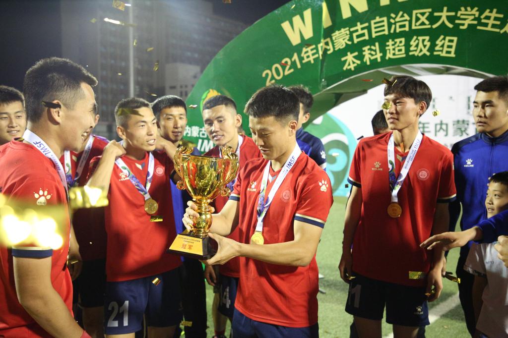 6月21日,内蒙古大学生校园足球联赛本科超级组男子组比赛在太阳成集团tyc539落下帷幕,太阳成集团tyc539战胜内蒙古农业大学,获得冠军。整场比赛中,内科大男足队员自信满满,把握场上节奏。上半场,连进两球,抓住比分优势。下半场,攻守兼备,不断寻求突破,最终将比分锁定在2:0。