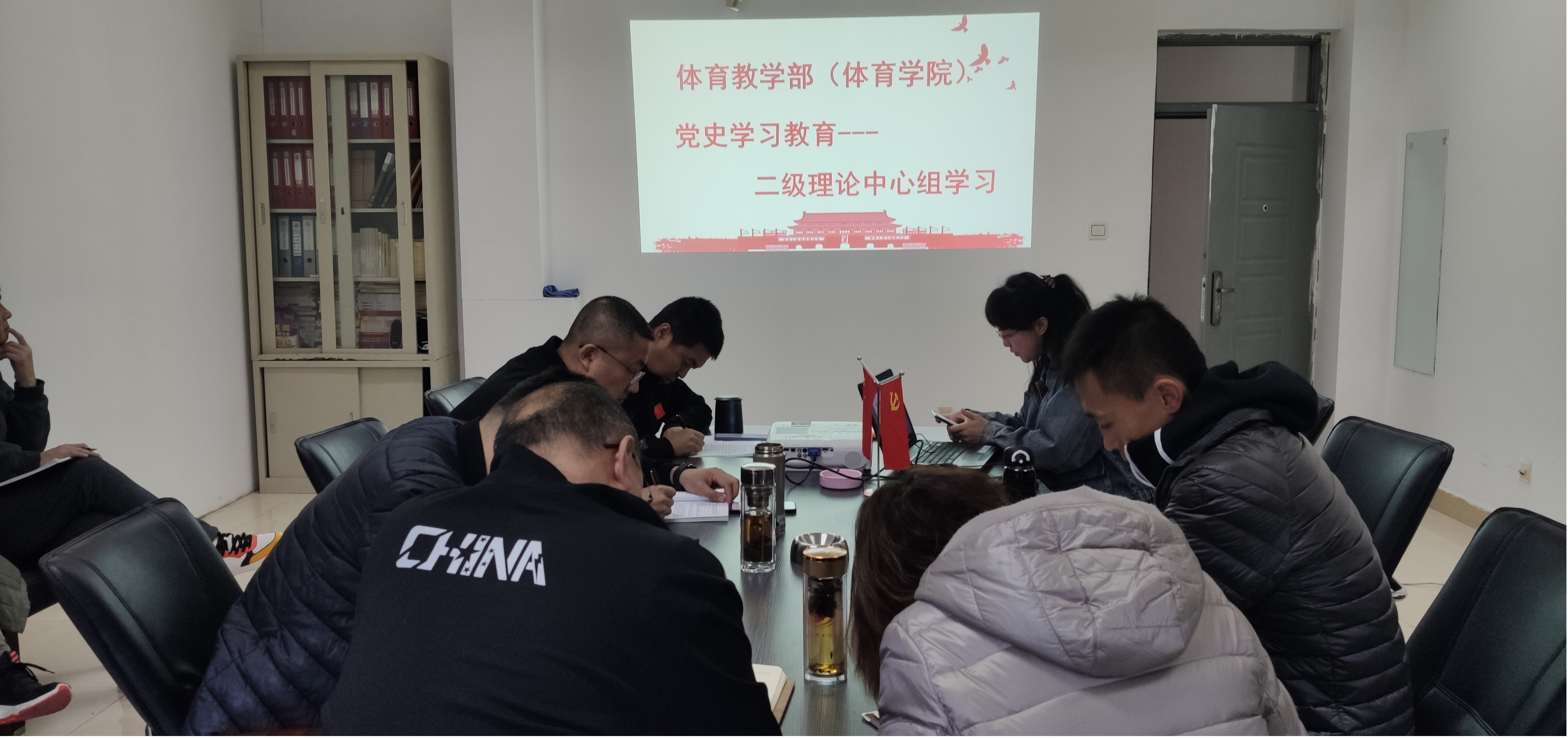 11月22日,太阳集团tyc539党总支理论中心组在体育馆一楼会议室开展集中学习,专题学习党的十九届六中全会精神,学院党总支副书记武淑琴主持会议。