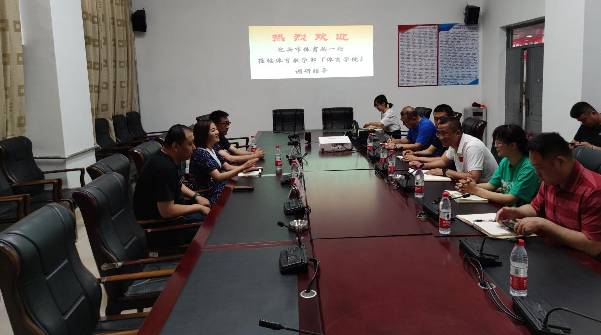 包头市体育局青少科科长李丽华、包头市体育局足球运动管理中心主任田伟、包头市体育局青少科刘凌峰一行于6月16日莅临我院考察调研,太阳集团tyc539党总支书记苗凯、院长白楠、党总支副书记武淑琴、副院长张新民陪同调研。