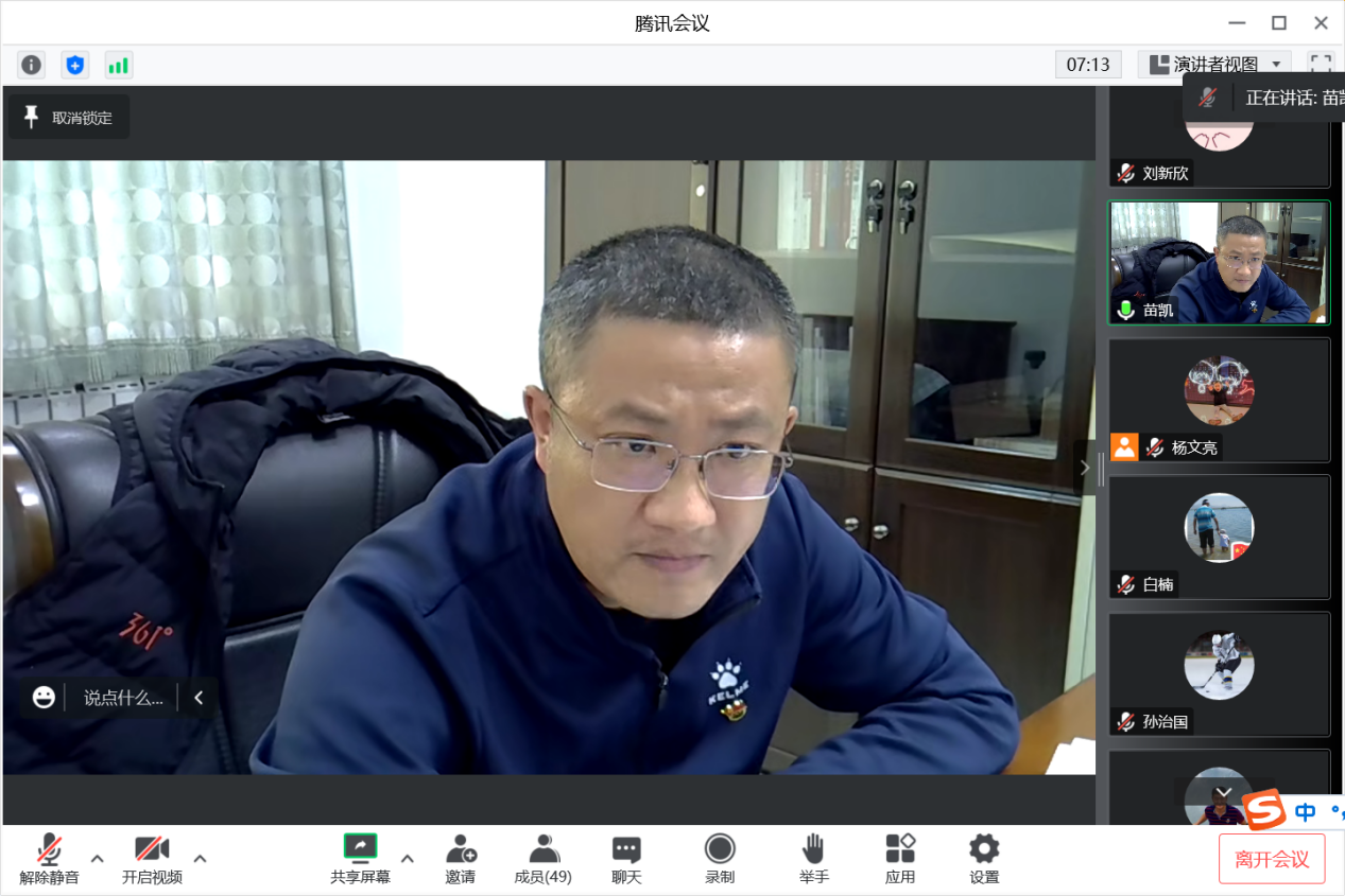 会议最后,苗凯代表学院党总支对学院全体教职工及第一批入住学校的11名教师及4名场馆工作人员表示衷心的感谢。10月5日,学院党总支书记苗凯带队,学院党总支副书记武淑琴等15名教师及工作人员勇挑重担,在学校实施严格封闭管理期间,为保障学生正常生活及学校工作的正常运行,义不容辞入住学校并始终坚守在学校疫情防控工作第一线。学院教师们纷纷对第一批入住学校教师表示敬意,他们为大家舍小家,用实际行动为抗击疫情贡献着自己的力量,充分发挥了为人师表的先锋模范作用。苗凯最后指出希望学院全体教职工众志成城、共克时艰,奋力夺取疫情防控阻击战和教育教学高质量“双胜利”,推动学院高质量发展。