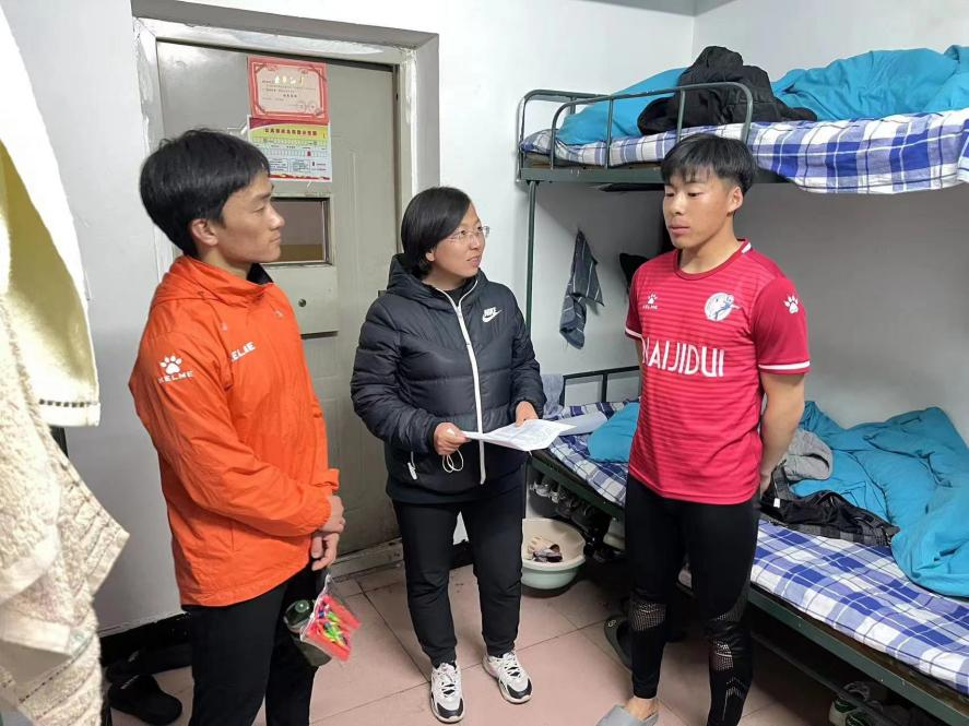 2023年4月7日晚8点,太阳集团tyc539党委书记苗凯、党委副书记武淑琴、学工办主任杨乐、辅导员王梦茹及各班主任老师对体育教育专业学生宿舍进行走访。