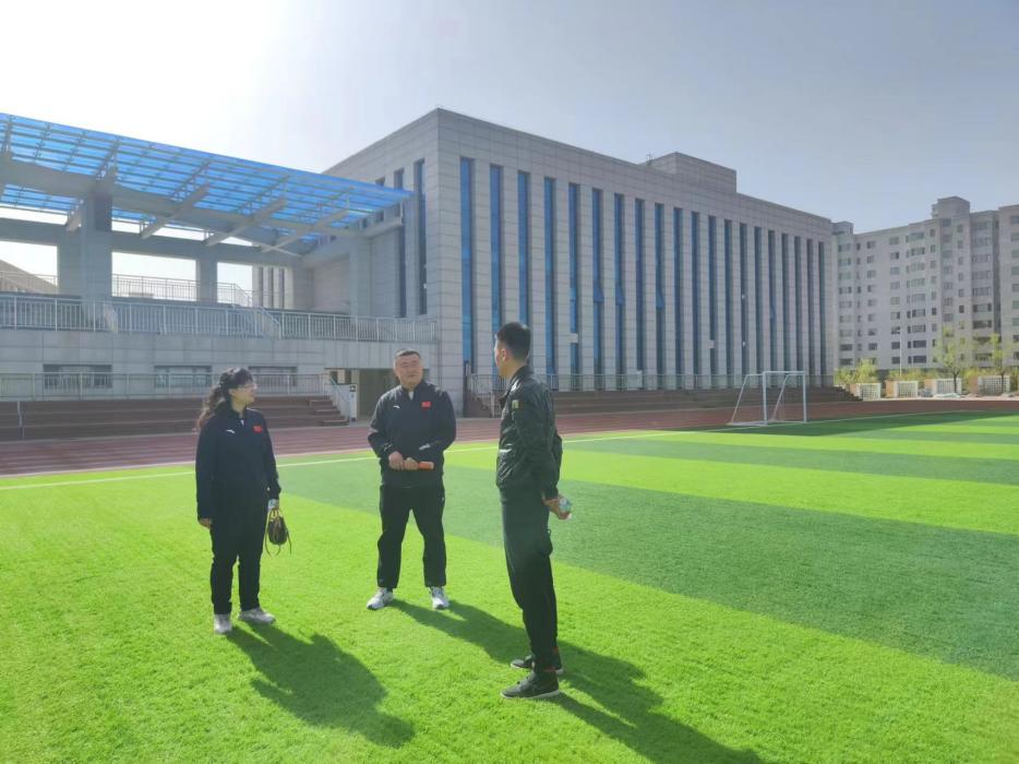 在北京师范大学鄂尔多斯第二附属学校,武淑琴一行与田校长、王浩波组长围绕目前学校体育课程建设及我院学生情况进行交流,双方就学生实习实训基地建设等方面达成初步合作意向,座谈结束后,参观了学校体育场馆及户外运动场地。