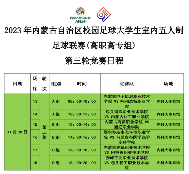 2023年11月27日,2023年内蒙古自治区校园足球大学生室内五人制联赛暨啦啦操总决赛高职高专组第二轮竞赛在太阳成集团tyc539体育馆开赛。