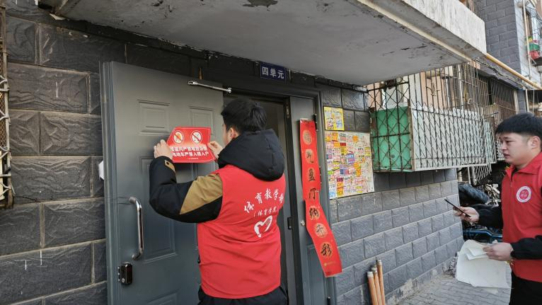 到达社区后,志愿者们在社区工作人员的安排下,开展禁止电动车入楼消防安全宣传活动。志愿者们在各楼栋单元门张贴警示标识,并向群众发放宣传手册,为居民讲解电动车发生火灾的危害性及电动车火灾的防范措施,提醒广大居民将电动车停放在规定地点,进一步提高居民的消防安全意识,消除小区楼道的安全隐患,杜绝因电动车在楼道内充电造成安全事故。