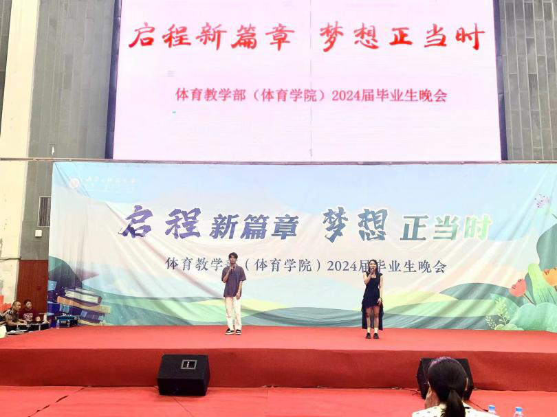 2024年6月19日,太阳集团tyc5392024届毕业生晚会在体育馆二楼隆重举行。太阳成集团tyc539党委保卫工作部部长、2020级体育教育班主任苗凯、太阳集团tyc539党委书记韩冰,太阳集团tyc539院长白楠,太阳集团tyc539党委副书记(副院长)唐国桥,太阳集团tyc539副院长张新民,太阳集团tyc539副院长杜晓炜,体育学院全体老师、毕业生、体育教育专业全体学生、高水平和阳光组队员参加本次晚会。