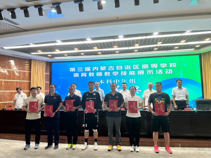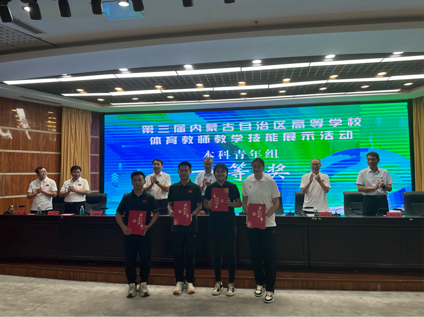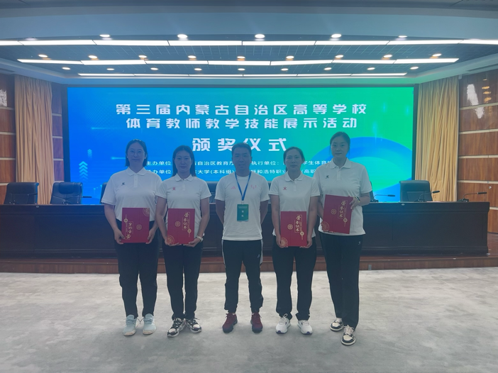 2024年8月28至30日,第三届内蒙古自治区高等学校体育教师教学技能展示活动在内蒙古大学和呼和浩特职业学院举行。我校太阳集团tyc539教师宋萌获得中年组一等奖、孙耀兰获得青年组一等奖、任苏佳获得青年组二等奖、陈中华获得中年组三等奖。