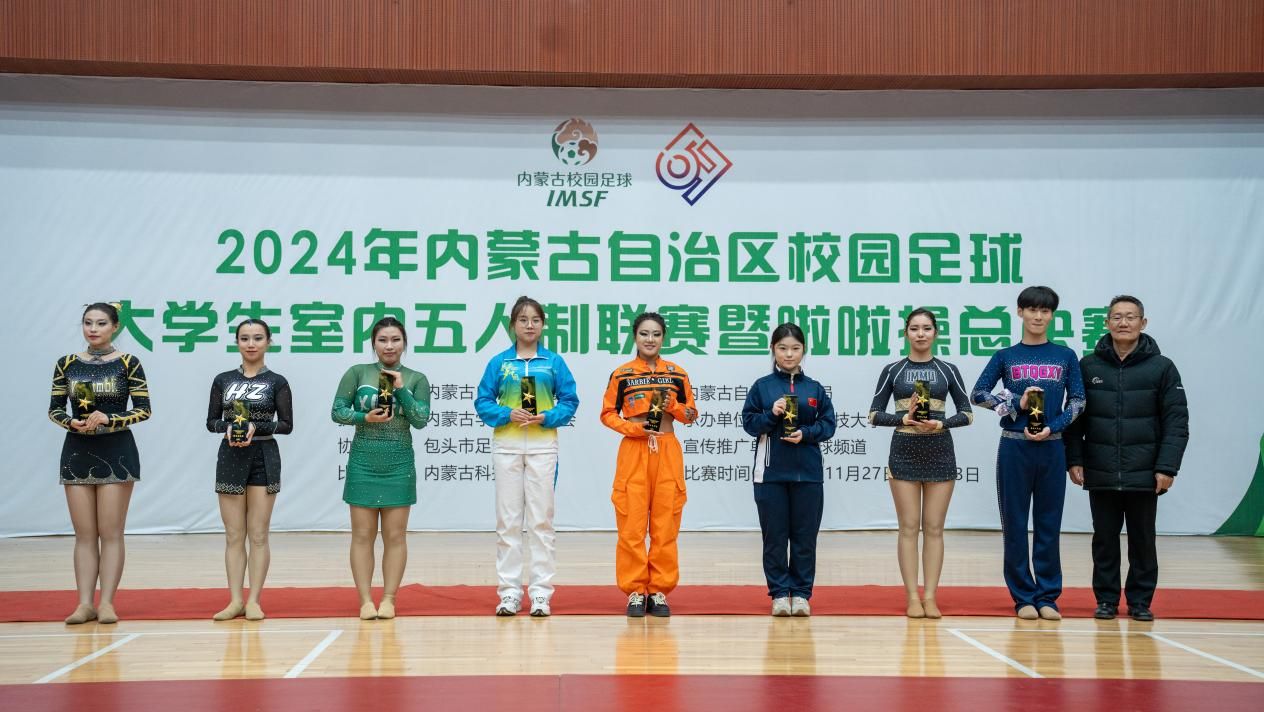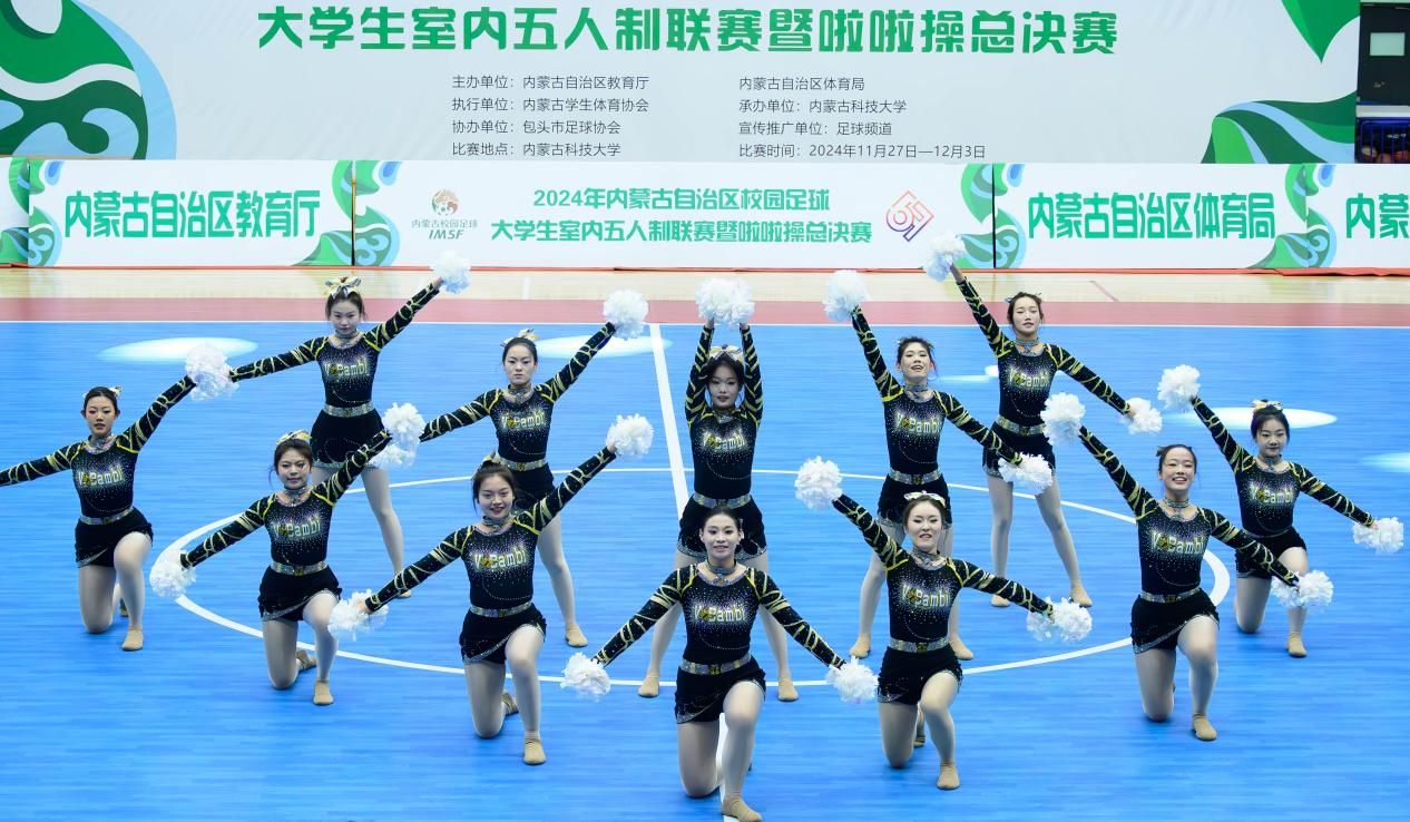 12月2日,2024年内蒙古自治区校园足球大学生室内五人制联赛暨啦啦操总决赛在太阳成集团tyc539体育馆圆满落幕。本次比赛分设本科男子组五人制足球、本科女子组五人制足球、本科组啦啦操、高职高专组啦啦操4个组别,共有来自全区16所院校25支代表队的415名运动员参加。