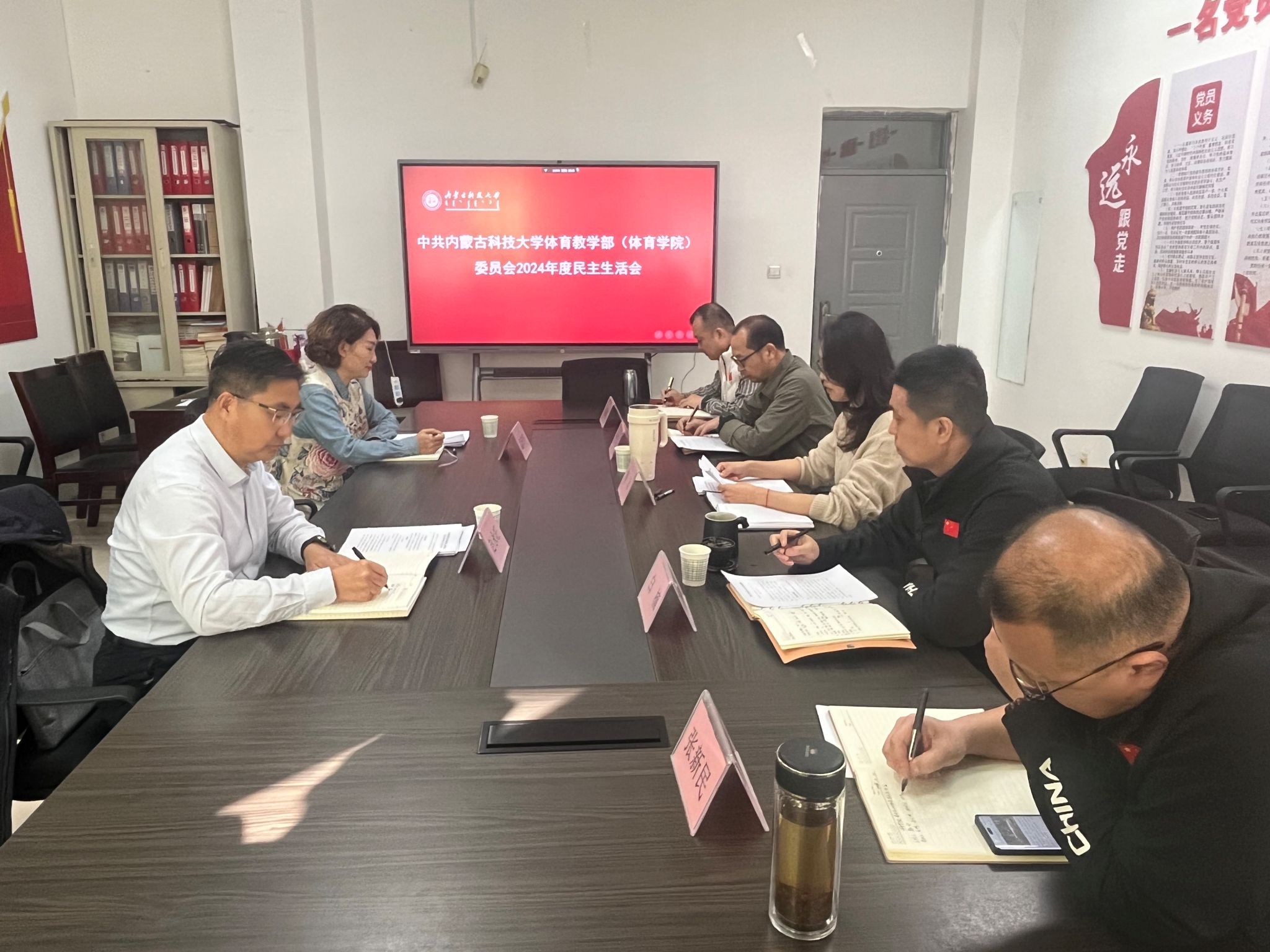 2025年2月25日下午,太阳集团tyc539党委在体育馆一楼会议室召开2024年度民主生活会。校党委委员、副校长赵永旺,校纪委委员、党委巡察工作领导小组办公室主任孟庆华到会督导,学院党委书记韩冰主持会议,学院党委班子成员参加会议。