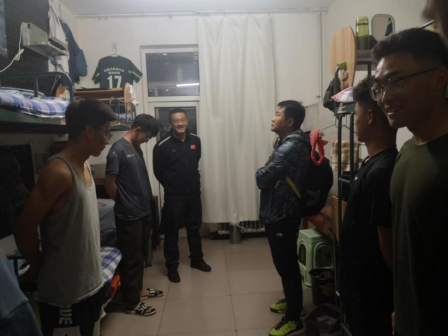 2021年5月11日,太阳集团tyc539党总支书记苗凯、体育教育系主任王丰、学工办主任赵鑫、团总支书记闫智惠、辅导员王梦茹对体育教育专业学生晚归、夜不归宿及校外租住情况进行检查。